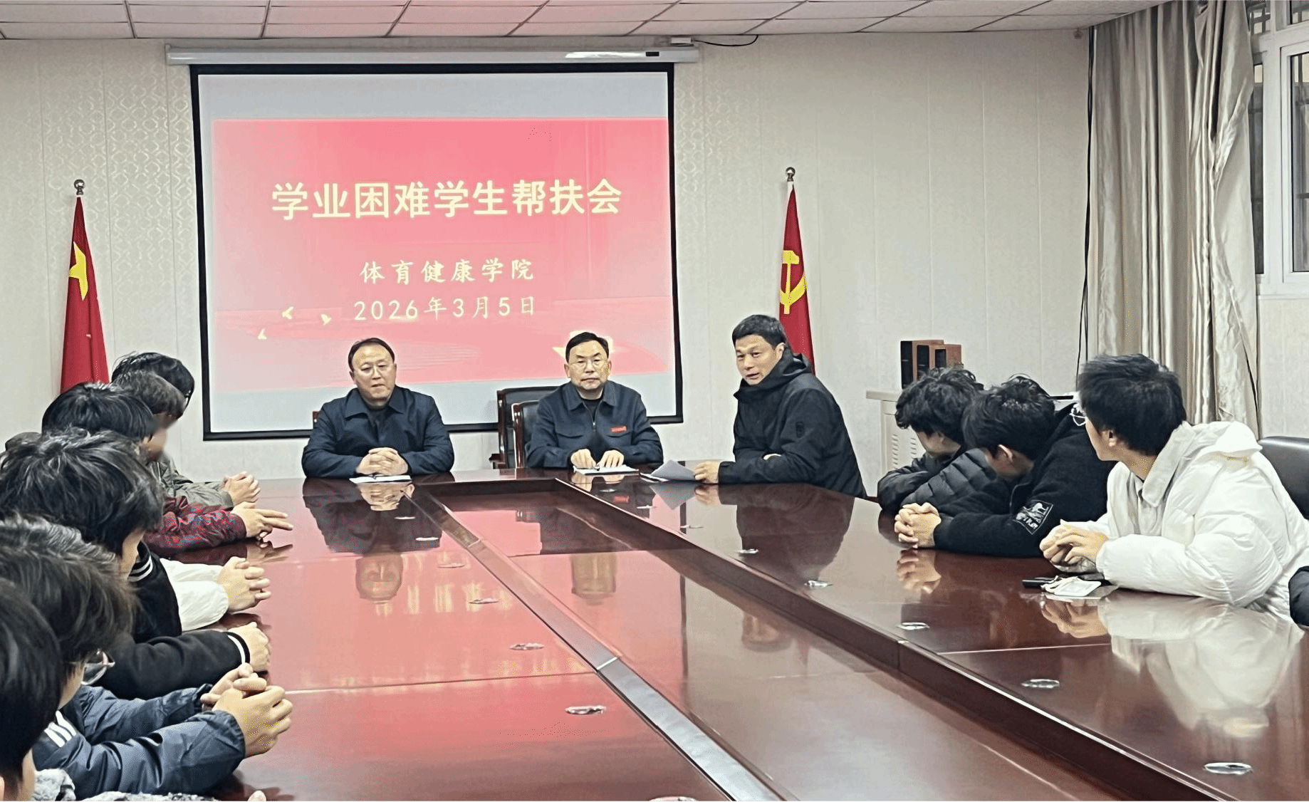 为切实加强学院学风建设,精准帮扶学业困难学生,助力学生夯实专业基础、提升学业质量,3月5日晚,体育健康学院在于体育馆114室召开学业困难学生帮扶专题会。学院领导、全体辅导员及相关学业困难学生参加会议。 会上,学院领导结合专业前景与学生实际情况,立足学院人才培养战略高度,深入剖析当前学生学业存在的薄弱环节,解读大健康领域就业形势,鼓励同学们正视自身不足,主动调整学习状态,科学规划学习与训练安排,...