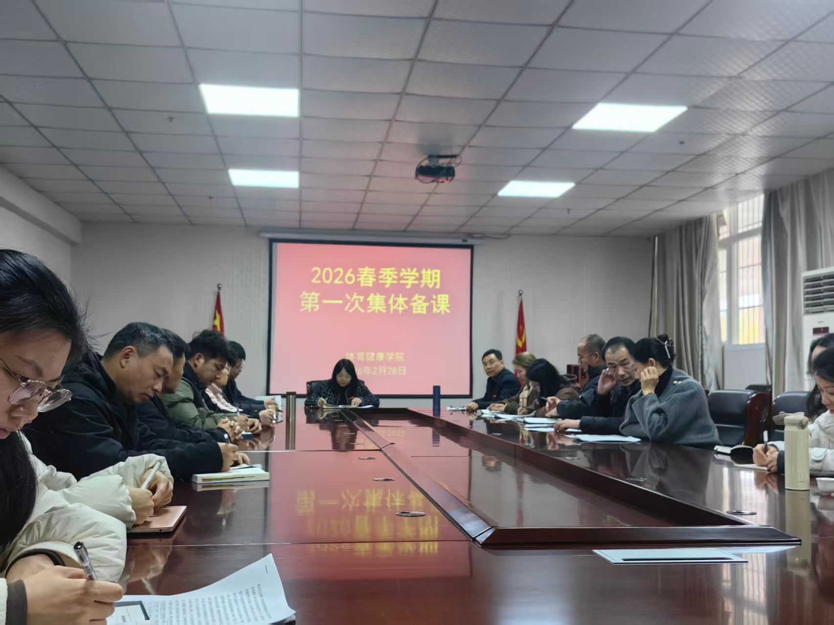 为统一教学思想,凝聚集体智慧,为新学期教学工作开好局、起好步,2月28日下午,体育健康学院在学院会议室组织召开了2026年春季学期第一次集体备课会。副校长钟凌云教授莅临指导,学院全体教师参加会议。