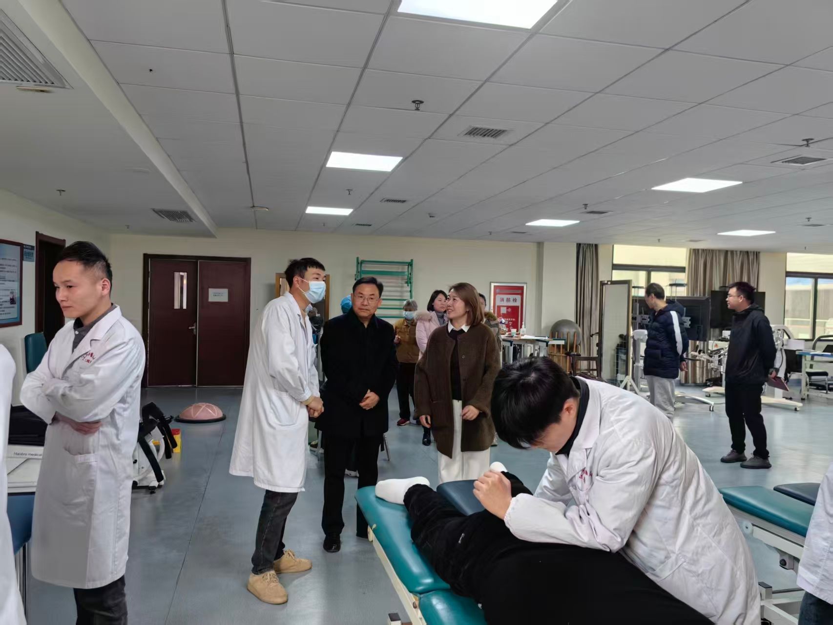 在江西省体育医院,考察组实地走访了运动康复中心、体能训练室等场所,与医院领导、带教老师及实习生座谈。学院领导详细询问了学生的思想动态、实习内容、技能掌握情况及生活保障,并慰问了困难学生,同时鼓励学生珍惜实习机会,将理论知识与临床实践相结合,提升专业素养和综合能力。实习生们纷纷表示,将认真完成实习任务,不辜负学院的培养和期望。