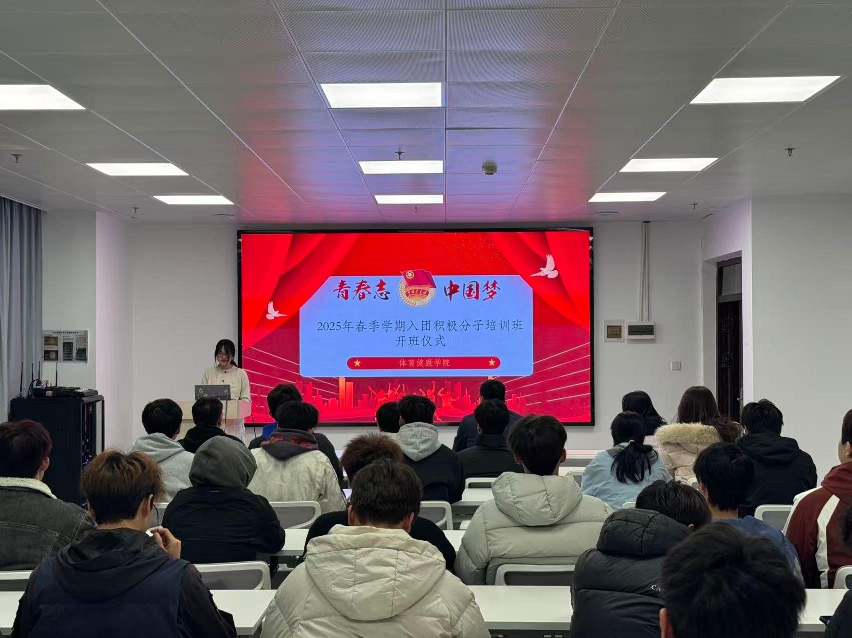通讯员(朱倩)为加强对学院入团积极分子的培养教育,提升其思想政治素养和理论水平,助力他们更好地向团组织靠拢,体育健康学院团委于11月18日在新大活101室举行2025年秋季学期入团积极分子培训班开班仪式暨团课第一课。学院领导、学院全体辅导员和2025年秋季学期入团积极分子培训班全体学员参加开班仪式。